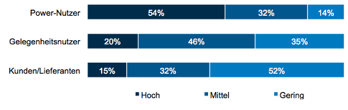 Power User setzen doppelt so häufig (54 Prozent) auf Lösungen aus der Cloud verglichen mit gelegentlichen Nutzern (20 Prozent) (s. Bild 1). Dank Software-as-a-Service (SaaS) BI-Tools können Power-Nutzer nun sehr einfach selbst ein Konto erstellen, Daten hochladen und mit der Analyse und Visualisierung von Informationen beginnen. Der von den Studienteilnehmern mit Abstand am häufigste genannte Anwendungsfall von Cloud-BI-Werkzeugen ist die Bereitstellung von Reports und Dashboards (76 Prozent) – typischerweise ein Einsatzfeld für gelegentliche Nutzer. Viele Tätigkeiten, die in der Cloud ausgeführt werden, sind deutlich komplexer und werden Power Usern zugeschrieben. So kommen die Tools beispielsweise für Ad-hoc-Analysen (57 Prozent), das Erstellen von Reports und Dashboards (55 Prozent), Data Preparation (39 Prozent) sowie Advanced- und Predictive Analytics (23 Prozent) zum Einsatz.