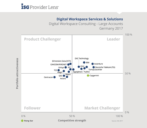 Dadurch sind einige Anbieter im Markt für Large Accounts im Jahresvergleich zu 2016 zurückgefallen. Sie bieten zwar sehr kompetente Technologieberatung an, sind allerdings noch nicht dafür aufgestellt, den Zugang zu Top-Entscheidern in den Fachabteilungen von DAX-Konzernen oder Mittelständlern wirkungsvoll zu nutzen. Zudem wird mit zunehmender Professionalisierung der Beratung auch die Unabhängigkeit von Betriebsleistungen ein zunehmend wichtiges Kriterium. Daher konnte AppSphere trotz des sehr umkämpften Marktes von der Position als Rising Star in 2016 in diesem Jahr in den Leader-Quadranten aufsteigen.