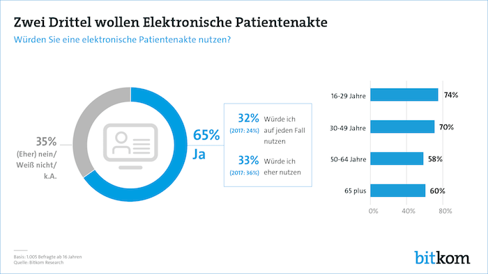 - Zwei Drittel wollen E-Rezept und Elektronische Patientenakte nutzen