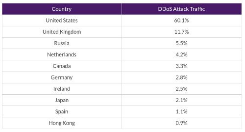 Zusätzlich zeigen die Daten für Q2, dass die USA und Großbritannien nach wie vor am meisten von DDoS-Angriffen betroffen sind.