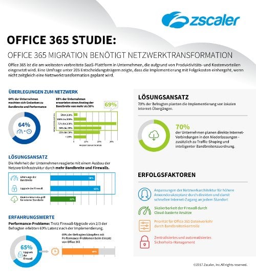 „Unternehmen haben am eigenen Leib erfahren, dass sich mit veralteten Architekturen keine Cloud-Anwendungen der Größenordnung von Office 365 nutzen lassen“, erklärt Punit Minocha, Vice President of Business Development bei Zscaler. „Um die volle Leistung und Flexibilität von Office 365 auszuschöpfen, plant eine Mehrheit der Unternehmen eine Netzwerktransformation weg von der herkömmlichen Architektur hin zu sicherem Internet-Zugang für Zweigstellen.“