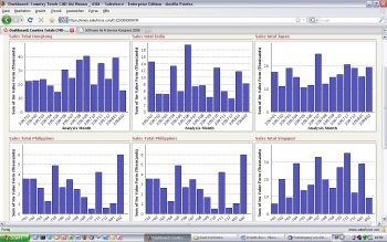 Als Beispiel für eine solche Übersichtlichkeit, die bei einer globalen Anwendung entstehen kann, soll das nachfolgende Beispiel dienen. Dies zeigt das Dashboards eines Kunden, der die asiatischen Märkte und deren monatliche Verteilung weltweit darstellt, da ein globales SaaS-System genutzt wird.