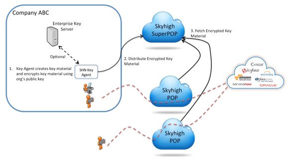 Da das Gateway nicht on-premise integriert werden muss, bleibt die Funktionalität von verbreiteten Anwendungen wie Salesforce, Office 365 oder ServiceNow vollständig bestehen. Auf diese Weise können Unternehmen Cloud-Dienste einsetzen, ohne Datensicherheit, Compliance oder Performance der Anwendungen zu gefährden. Dieses spezielle Verschlüsselungsverfahren von Skyhigh Networks hält das US-Patent 9,413,730.