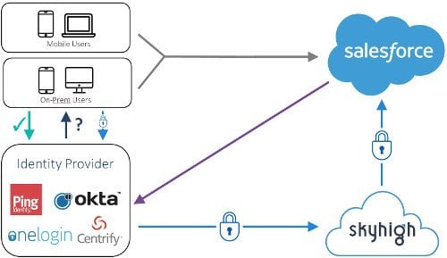 Bild: Der CASB von Skyhigh sichert die mobile Cloud-Kommunikation beispielsweise mit Salesforce zusätzlich ab (Quelle: Skyhigh Networks).