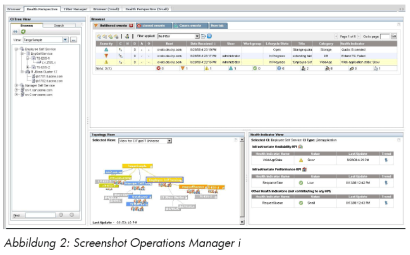 Operations Manager i (OMi) fungiert hierbei als konsolidierte Management-Plattform für so genannte Events (Alarme) aus dem Endanwender-, Geschäftsprozess- und IT-Monitoring. Nutzer von OMi ist typischerweise der First Level Support. Das Besondere an der Lösung ist, dass sie Events sowohl auf technischer als auch geschäftlicher Ebene nach Relevanz priorisiert, filtert sowie nach ihren Ursache-Wirkungs-Zusammenhängen vorstrukturiert und präsentiert. Der First Level Support erkennt praktisch auf einen Blick, wie geschäftskritisch das Problem ist und in welchem Bereich die Problemursache angesiedelt ist. Damit wird eines der größten Probleme beim Monitoring gelöst: in einer unübersehbaren Masse an technischen, benutzerorientierten und geschäftsrelevanten Alarmen zu unterscheiden, was Ursache und was Wirkung ist. Erreicht wird dies durch die „Topologie-basierte Event-Korrelation“: Dabei werden die Events mit der Abhängigkeitshierarchie (Dependency Map) der UCMDB abgeglichen, bevor sie in OMi angezeigt werden.