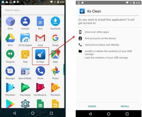 Zscaler konnte das Android Package (APK) identifizieren, das bekannt ist als “kskas.apk” und nach der Installation als “Ks Clean”, eine Android Cleaner-App, dargestellt wird.