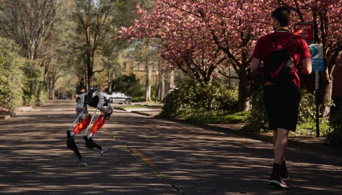 Dem künstlichen Gehilfen, der seine Laufbewegungen mithilfe von maschinellem Lernen auch in schwierigem Outdoor-Terrain steuern kann, ist es nun erstmals gelungen, eine Strecke von fünf Kilometern in einem Stück zu absolvieren. Für die gesamte Distanz brauchte er nur 53 Minuten und eine einzige Akkuladung.