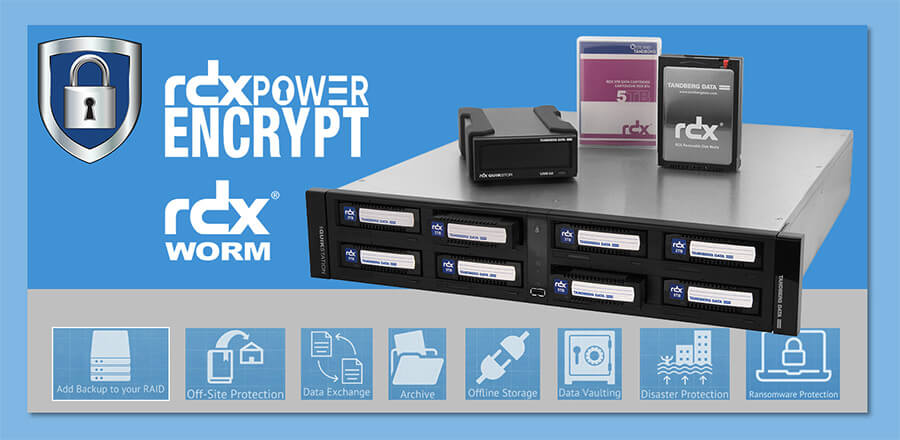 Mit RDX PowerEncrypt steht für die Wechselplattentechnologie auch eine Hardware-basierte Verschlüsselung auf 256-AES-XTS-Standard zur Verfügung. Die Hardware-basierte Verschlüsselungstechnik ist im Vergleich zu Software einfacher zu handhaben, belastet die Prozessorleistung nicht und erzeugt keine Konflikte mit Betriebssystem- und anderen Software-Ständen.