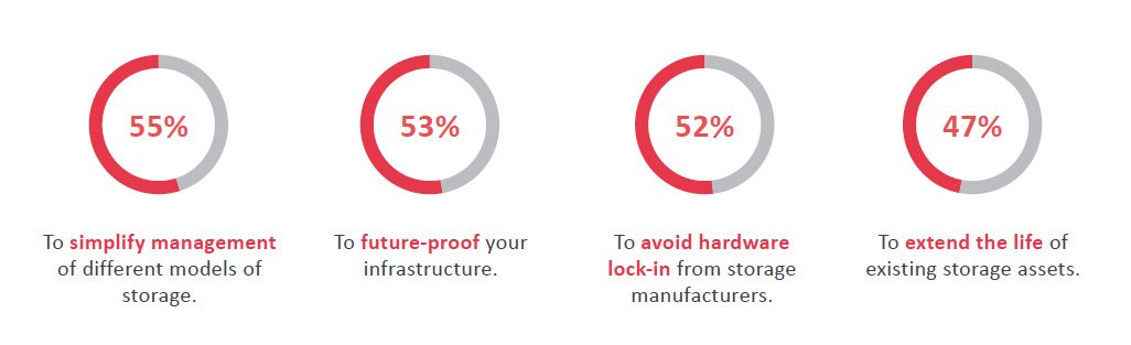 ► Herstellerbindung an Storage-Hardware-Anbieter vermeiden (52 Prozent),