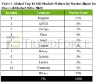 Trendforce listet die Top-10-Anbieter für SSD-Module. (Quelle: Trendforce)