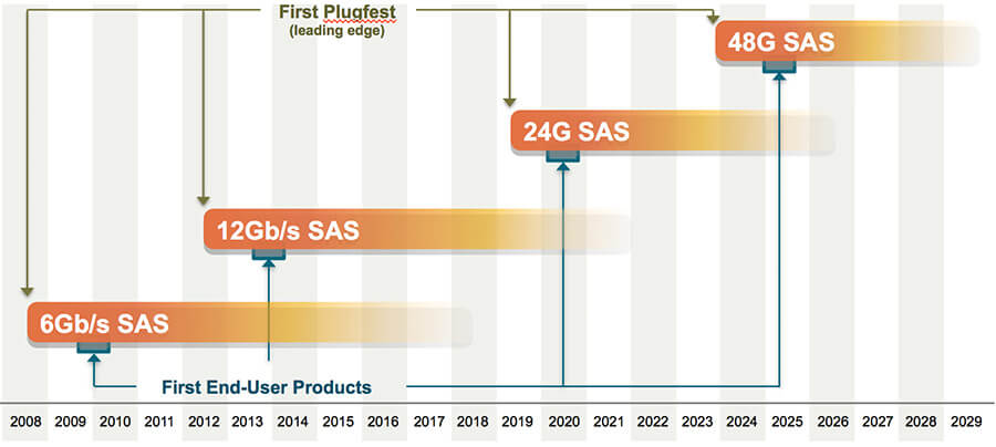 Für Ende 2023 ist von der STA das nächste Plugfest geplant, dann für 48G SAS. Am zugehörigen Standard SAS-5 arbeitet man in der T10-Arbeitsgruppe des INCITS seit Mai 2018, für November 2020 ist eine erste öffentliche Version der Spezifikation vorgesehen. Hersteller setzen also offenbar auch weiterhin noch auf SAS und investieren in die Weiterentwicklung der Standards.