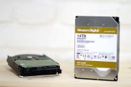 Für unseren Hands-on-Test haben wir über die PR-Agentur von WD, F&H, eine WD Gold mit 14 TByte erhalten. Die Festplatte mit der Modellbezeichnung WD141KRYZ ist mit einem 512 MByte großen Cache ausgestattet und mit einer Datenübertragungsrate von bis zu 267 MByte/s spezifiziert. Laufwerke mit Kapazitäten zwischen 4 und 12 TByte sind mit nur halb so viel Zwischenspeicher bestückt.